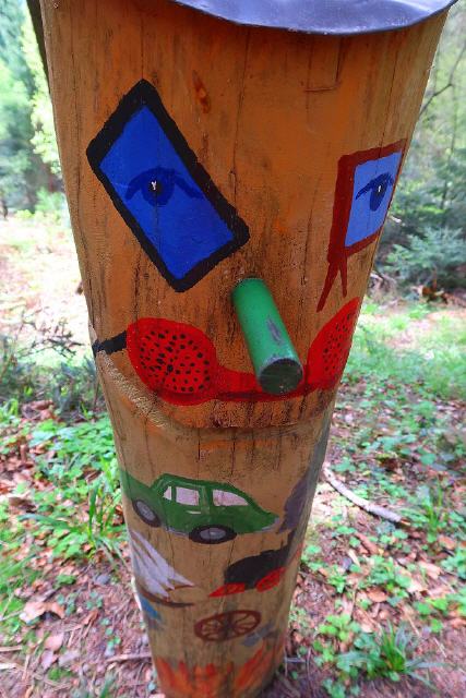 Beim Bahnhof sind schon die ersten Männchen zu entdecken. Der Weg führt kurz nach unten. An der Straßengabelung nach rechts abbiegen und gleich wieder links. Nach dem Friedhof nach rechts halten. Viele Stationen Dir jetzt Antworten, auf Fragen wie “Wer sind die Waldbewohner?", "Wer sind die Feinde des Waldes?", "Welche Aufgaben hat der Waldboden?“.