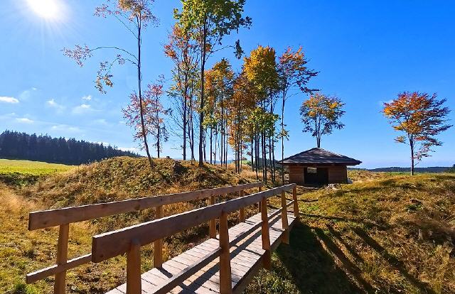 Ausgerüstet mit einfachen Holzspaten und Schubkarren bauten einst die Bauern unter Markgraf Ludwig Wilhelm von Baden eine gewaltige Schanzenanlage. Überreste dieser Verteidigungslinie gegen damals einfallende Franzosen sind bis heute in Breitnau erhalten. Sie können über einen Rundwanderweg, dem Türkenlouispfad, begangen und erlebt werden. Tafeln informieren über die Menschen, die ein Leben zwischen Hof und Wall, Pflug und Schanze fristeten. Bild antippen!