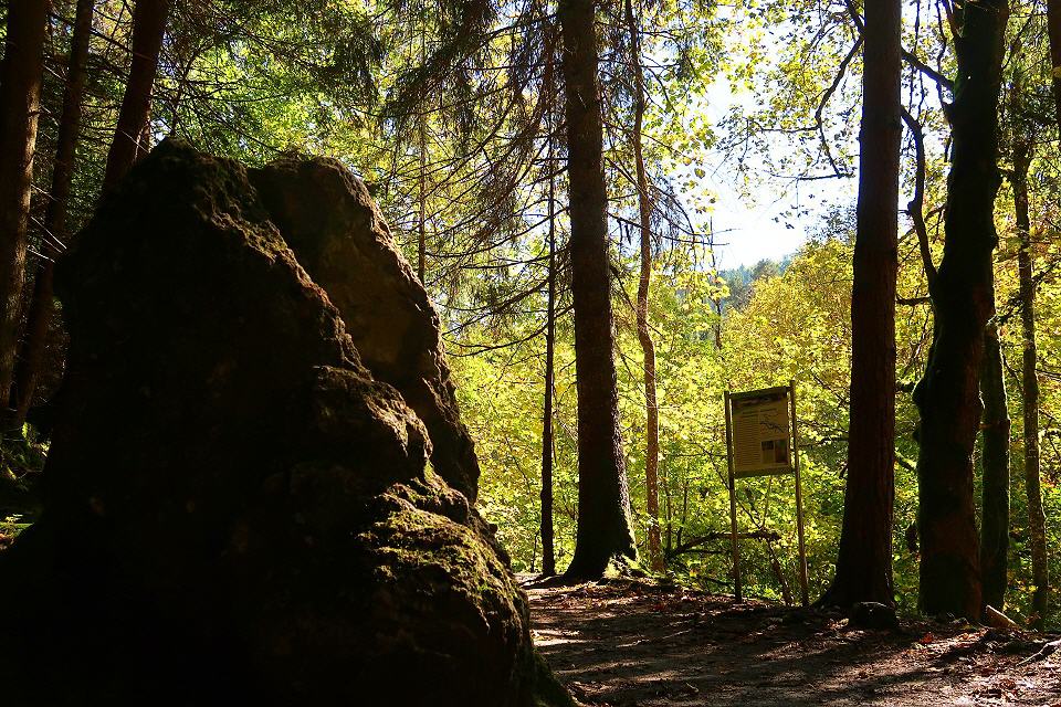 Wer heute entlang des Wutachwanderweges bei Dietfurt auf Spurensuche geht, kommt unweigerlich am Dietfurter Wasserfall vorbei. Er liegt an der Schelmenhalde und ist ein ganz besonderer Wasserfall. Über stark bemooste Felsen ergießt sich ein Bach, dessen Wasser wie ein Vorhang herabrieselt. Man bezeichnet dieses Phänomen als Schleierwasserfall.