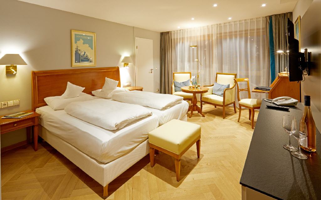 Doppelzimmer Kinzigtal. Doppelzimmer 34 bis 36 qm, Loggia/Balkon 4 bis 8qm, Waldseite mit Morgensonne. Unvergessliche Urlaubsmomente garantiert: Wenn die Morgensonne durch den Schwarzwald blinzelt und durch das geräumige Doppelzimmer flutet, steht einem perfekten Ferientag nichts mehr im Weg. Der elegante Stil – akzentuiert mit traditionellen Elementen – sorgt für höchsten Wohnkomfort. Besonderes Ausstattungsmerkmal: separate Toilette und teilweise begehbare Ankleiden.