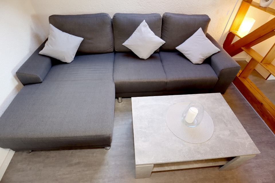 - Wohnen: gemütliche Couch, Tisch, Flachbild-TV