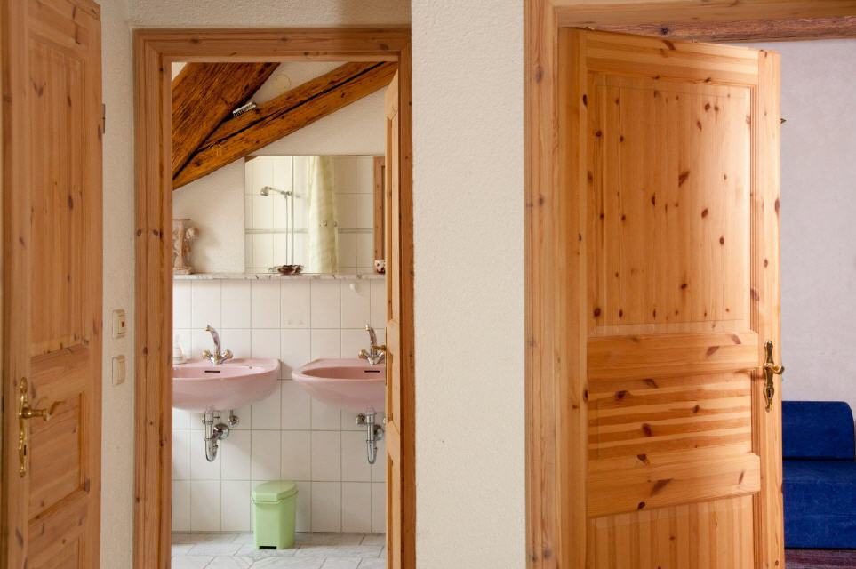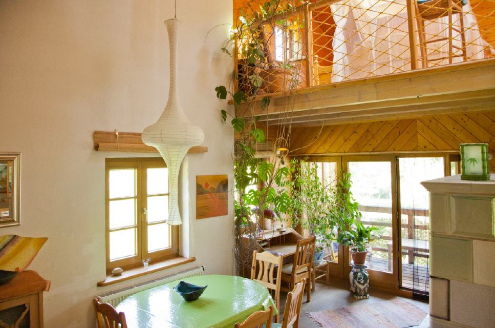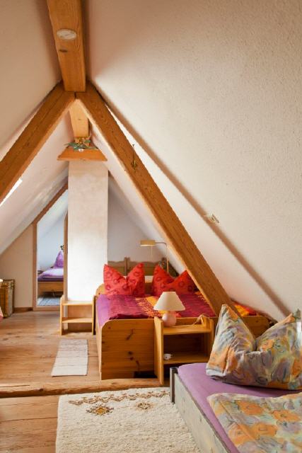Sich Ruhe gönnen... bei uns im liebevoll baubiologisch restaurierten, über 200 Jahre alten Natursteinhaus mit hellen 2-Etagen-Wohnungen, den Balkonen, Vollholzküchen, Kork- und Holzparkettböden. Idyllisch am Südhangwaldrand gelegen ist es perfekt für Wanderungen vor Ort, zum Entspannen am Teich, der Feuerstelle (mit Schafen und Katze) dem Spielplatz, Rutsche, Schaukel und großem Trampolin. Hier bieten wir 2 Ferienwohnungen. Sie liegen in unserem Haus (unsere Wohnung ist im Erdgeschoss). Die "kleine Wohnung" liegt im ersten Stock und die "große Wohnung" im zweiten (ausgebauter Dachstuhl). Sie sind selbstverständlich komplett eingerichtet.