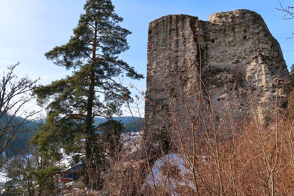 Auf einem Felssporn zwischen dem Fluss Breg und dem aus einem Seitental kommenden Flüsschen Urach ragt in Hammereisenbach, einem Stadtteil von Vöhrenbach im Hochschwarzwald, die Ruine Neufürstenberg. Die weithin sichtbare Schildmauer ist jüngst saniert worden.