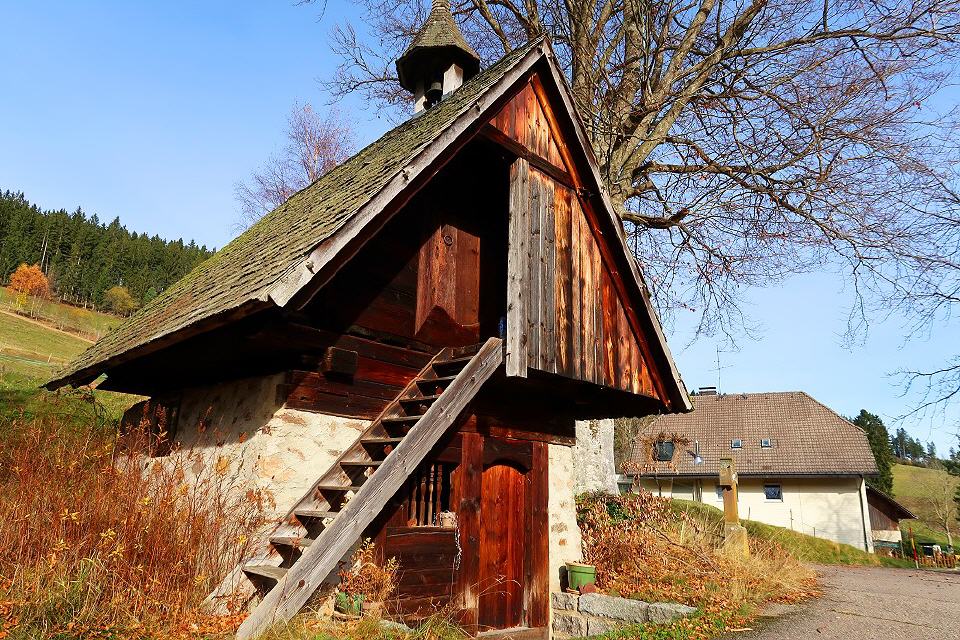 Weiter geht's zum Pfaffenhof mit seiner Hofkapelle. Sie stammt aus dem 17. Jahrhundert und wurde an die Schmiede des Hofes gebaut. Der Schwarzwaldhof selbst stammt aus dem Jahr 1613.