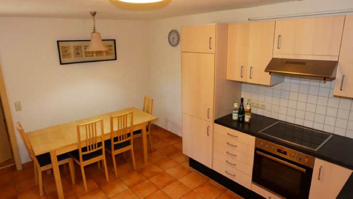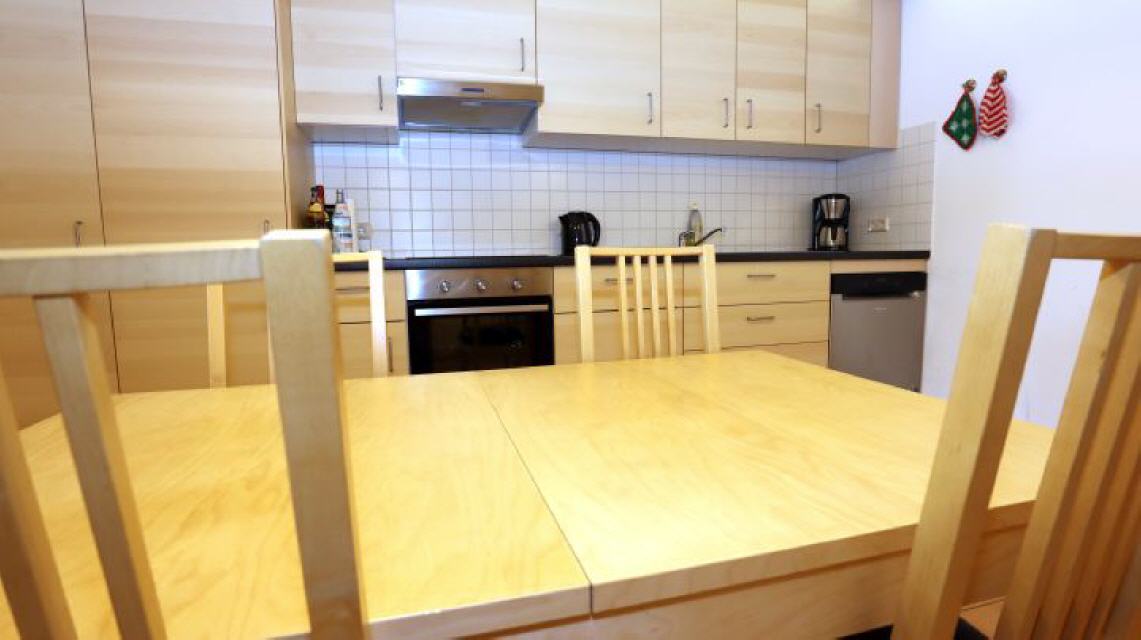 gut ausgestattete Wohnküche mit großem Esstisch