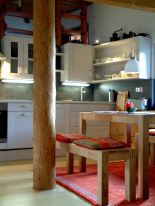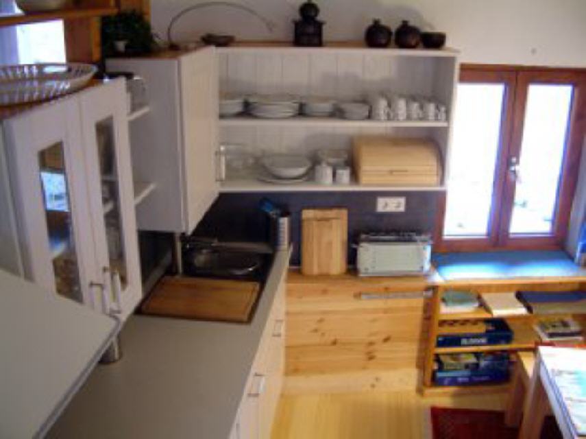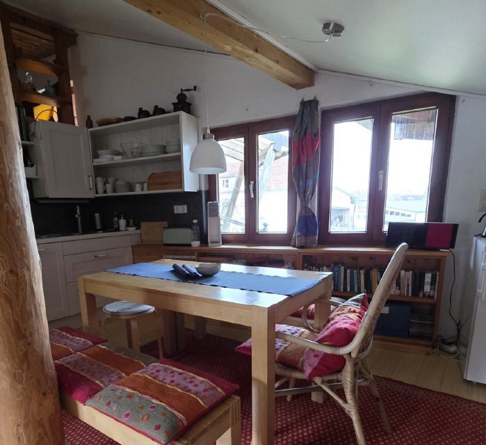 Die Ferienwohnung hat einen direkten Zugang zum eigenen Garten und Sitzplätze im Grünen. Geheizt wird mit einem eigenem Grundkachelofen, in dem auch Brot und Pizza gebacken werden kann.