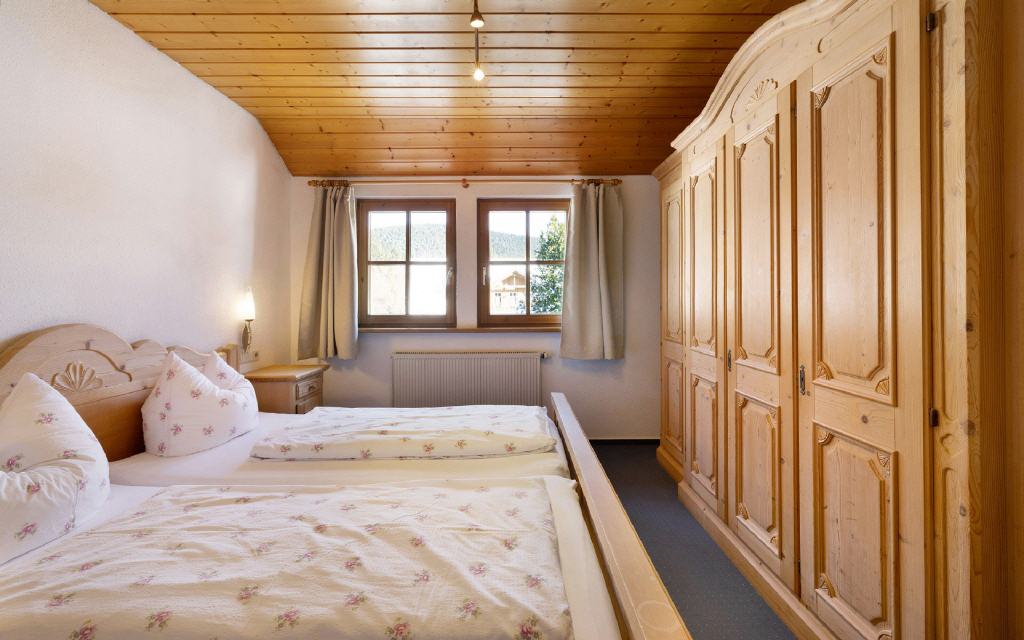 Ferienwohnung Leibgeding: Diese Ferienwohnung hat 2 separate Schlafräume mit je einem Doppelbett, einen Wohn-Essraum mit Küchenzeile und Balkon sowie ein Badezimmer. Größe ca. 60 qm. Preis ab 105 Euro (pro Nacht ab 4 Übernachtungen).