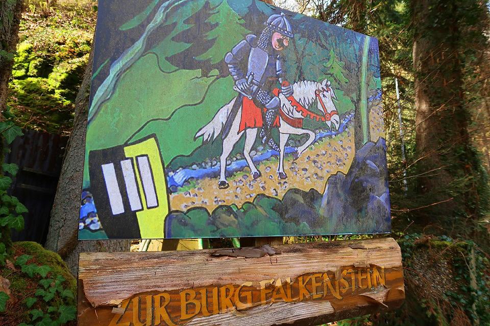 Von Schramberg auf der L175 in Richtung Hardt bzw. St. Georgen. Kurz nach Schramberg liegt direkt an der Straße ein Parkplatz. Auf der gegenüberliegenden Seite befindet sich der Aufstieg zur Burg Falkenstein. - Die Falkensteiner Kapelle liegt unterhalb der Burg am Ortseingang von Schramberg.