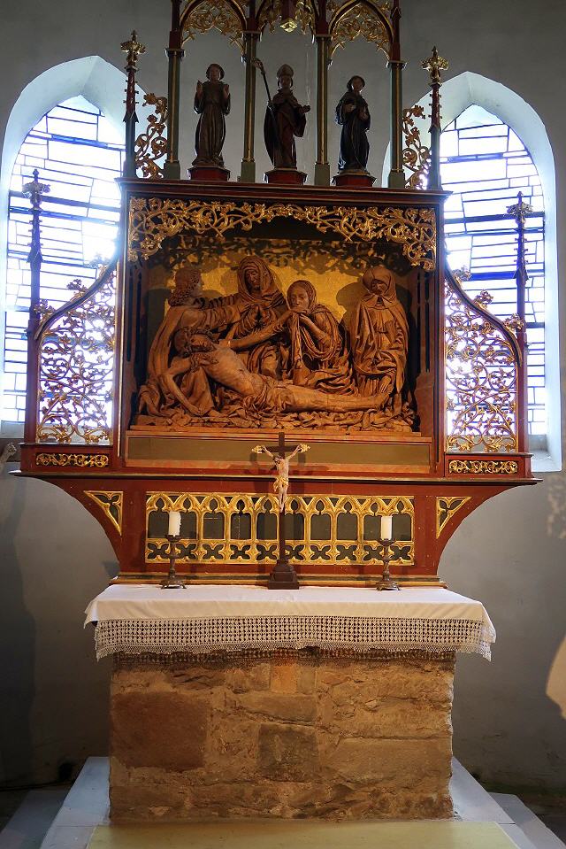 Im Chor der Kapelle befindet sich die „Falkensteiner Beweinung“, eine spätgotische Skulpturengruppe aus dem Jahr 1515, geschaffen von Conrad Rötlin aus Rottweil. Diese Darstellung der Beweinung Christi gilt als eines der bedeutendsten Werke ihrer Art nördlich der Alpen und ist ein herausragendes Beispiel spätgotischer Kunst .